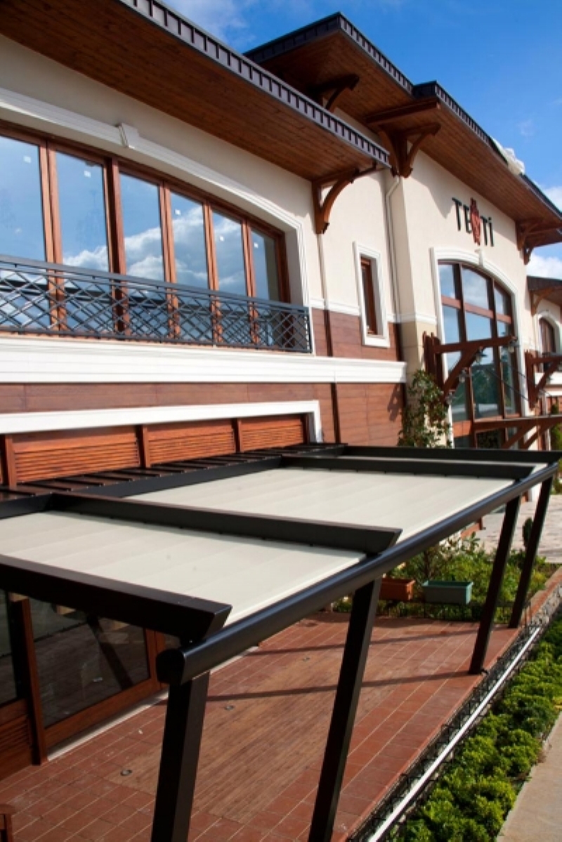 Ses ve ısı yalıtımı yapar,yağmurdan korur,evlerınıze ve ıs yerlerınıze şık bir görünüm kazandırır.Kumandalı kullanımı sayesinde size kolaylık sağlar. Kumaş özellikleri;gizli su tahliyesi sayesinde su geçirmez, yanmaz,ateş yürümez,sigara delmez bir yapıya sahiptir.Kullanılan malzemeze 3 katmanlıdır,bu katmanları sayesinde ses ve ısı yalıtımı sağlar.PERGOLA TENTE; otomatik kumandalı mekanizmasıyla kapanarak mekanlarınızı, güneşli havalarda güneşten,yağmurlu havalarda da yağmurdan korur, yani hem yağmurluk hem de güneşlik olarak kullanılır.Özellikle sigara içilen alanlarda kumandası sayesinde pergolanızın üstünü açıp içerideki havanın devirdaimini sağlayabilirsiniz.Spotlu ışıkları sayesinde akşamları da mekanlarınızı aydınlatır,dilediğinizde yine üstünü açıp yıldızları izleyebilirsiniz. PERGOLA Tente Bulunduğunuz mekana ferah bir hava verir.Çevredeki evlerden ve iş yerlerinden farklı olmayı isteyenler PERGOLAYI tercih edebilir. Bulunduğunuz alanlar camla kapalı olsa dahi bu sistemi kullanabilirisiniz.Bu sayede mekanınız kışın kış bahçesi ,yazın da serin havanın tadını çıkarabileceğiniz bir alana dönüşür.Havuz üstlerini de ayrıca bu sistemle kapatabilirsiniz.PERGOLA TENTE mekanınıza değer katar