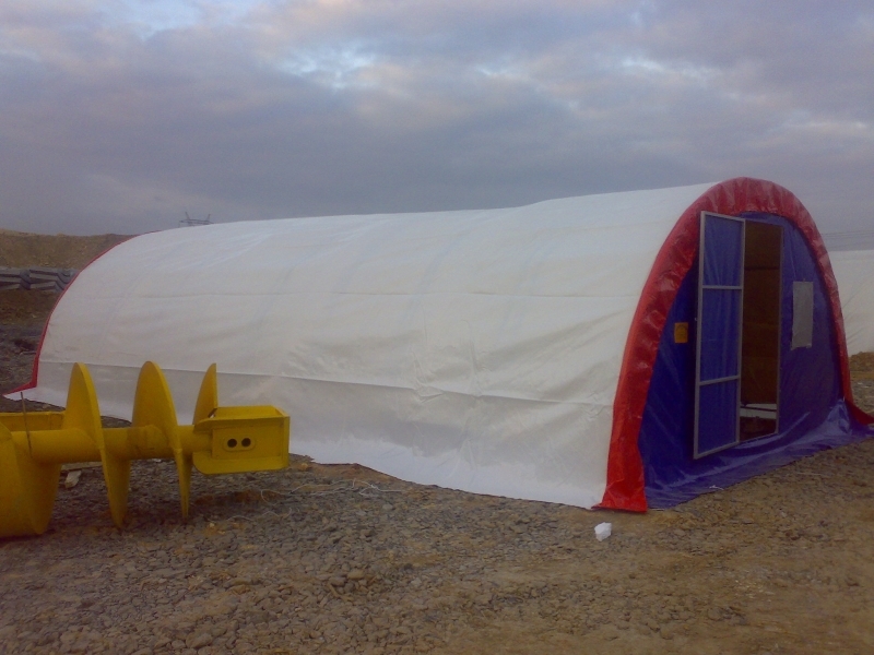 Şantiyelerinizde konaklama, yemekhane, yatakhane ve depolama ihtiyaçlarınızda çok kullanışlı olan şantiye çadırları firmamız tarafından özenle imalatı yapılıp satışa sunulmaktadır. İstenilen her ebatta üretimi yapılabilmektedir. İzoleli – izolesiz, sobalı- sobasız gibi çeşitleri bulunmaktadır. İstenildiğinde şantiyelerde ofis olarak ta dizayn edilebilmektedir. Şantiyede sünger - yaylı yatak, yorgan, nevresim takımı, yastık gibi ürünlerde firmamız bünyesinde sizlere sunulmaktadır. Şantiye çalışanlarının barınması için imal edilmektedir. İşçi sayısına göre ölçüleri değişmektedir. Yatakhane, yemekhane ve depo çadırı olarak kullanılır. Gerekli ekipmanlar çadırın ölçülerine göre dizayn edilmektedir. İskelet yapısı yuvarlak sanayi borusu ile istenilen ebatlarda üretimi yapılmaktadır. İzoleli ve izolesiz olarak yapılmaktadır. Yapının demir profili ölçülere göre mukavemeti değişiklik göstermektedir. Demir aksamı elektro galvaniz boyalıdır. İskeleti bir bütün olduğundan ayrıca ek destek gerektirmez. Dış kaplaması pvc polyester brandadır. Taşınabilir özelliğe sahiptir. İstenildiğinde ek özellikler yapılabilir.
